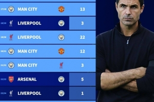 体育资讯2月13日讯 本赛季英超26轮战罢,阿森纳目前以4分优势领先曼城位居榜首,德转也盘点了近10个赛季英超同期前两名积分差距情况,具体如下: