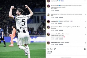 洛卡特利也在赛后通过社媒晒出进球后的庆祝照,并配文:“我为我们这支球队感到骄傲。今天的尤文图斯比昨天更加骄傲!战斗到最后一刻!”