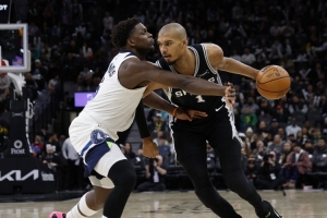 爱德华兹开玩笑称文班亚马是外星人,他说道:“我不会撒谎,文班亚马真的像个外星人。我想揍他一顿。他是外星人。我会抓住他的。我们之后还会再和他对阵。”