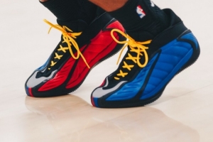 今日爱德华兹上脚了昨日训练时曾上脚的鞋款——AE 2 堪萨斯大学PE。这个配色采用了阴阳红蓝配色,鞋后跟有堪萨斯大学的吉祥物Jayhawk(松鸦鹰)。