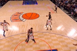 GIF-布伦森与申京倒地 尼克斯挑战成功
