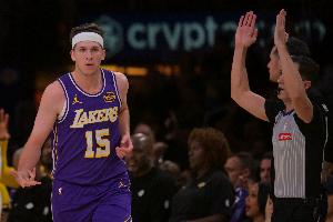 体育资讯2月23日讯 黄绿大战上半场,湖人50-60凯尔特人。