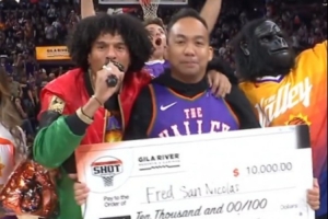 GIF——太阳球迷投中中场三分 喜提1万刀